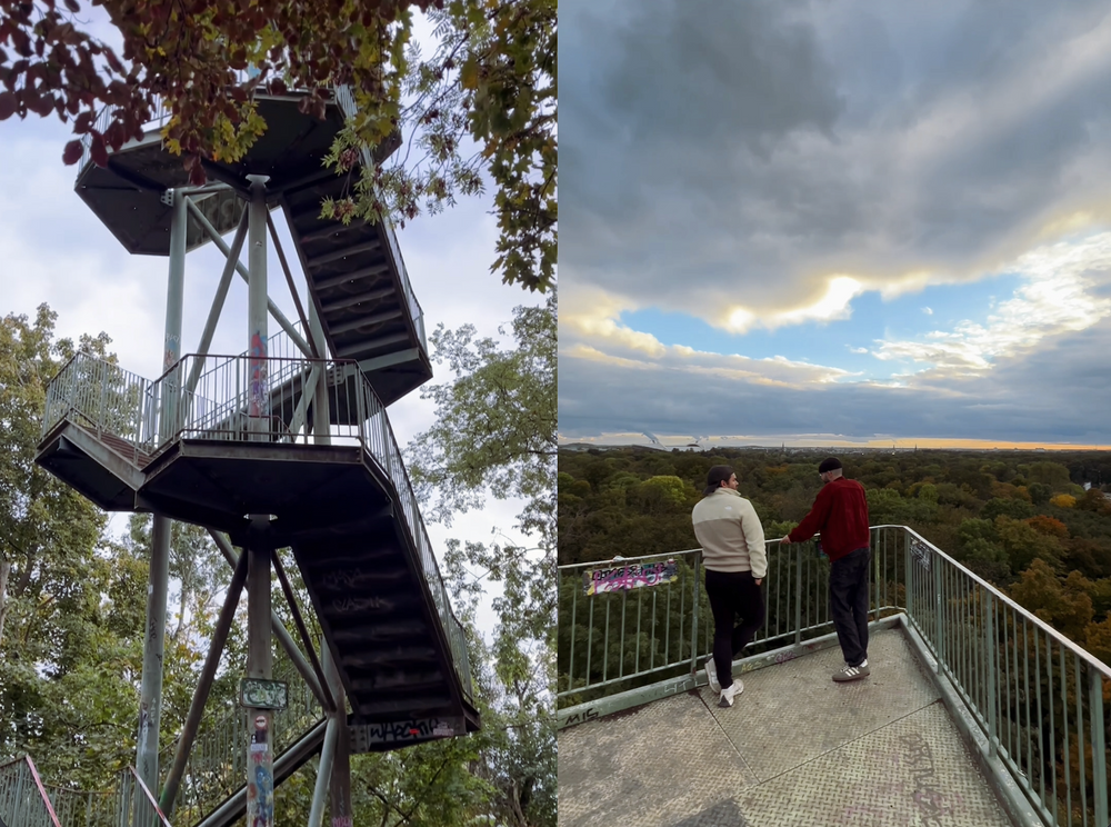 Unser Verdauungsspaziergang führt zu uns weiter zu unserem letzten Halt: dem Wackelturm im Rosental. Kostenlos und mit wunderschönem Blick über die Baumkronen auf die Leipziger Skyline! 🌿