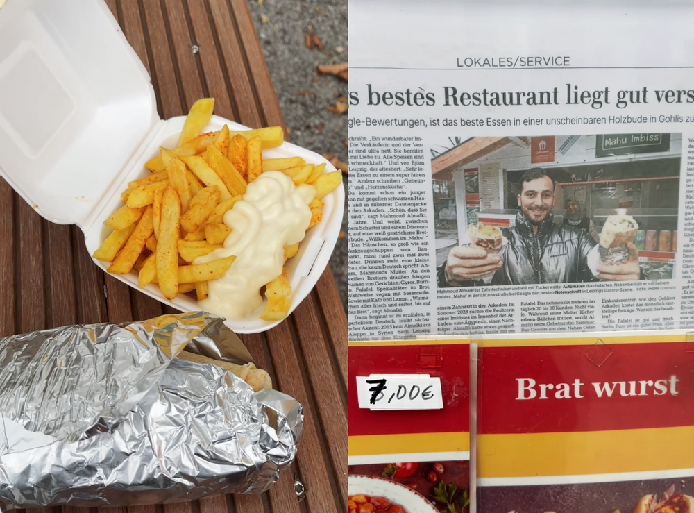 Unser nächster Food Spot ist ein bisschen versteckt und relativ unscheinbar. Das Besondere: Dieser Imbiss hat die besten Google Bewertungen in ganz Leipzig. Dementsprechend waren unsere Erwartungen beim Mahu Imbiss natürlich hoch. Wir haben eine Falafel und eine Pommes für insgesamt 10€ bestellt. Es war zwar nicht das beste Essen, was wir in Leipzig jemals gegessen haben, aber für den Preis auf jeden fall sehr gut! Bezahlt haben wir alles super easy mit Apple Pay ✨